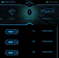 A battery inserted into the Lower Slot powers the tool or weapon installed in the Upper Slot.